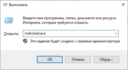 2. В открывшемся окне ввести команду mdsched.exe. Нажать «ОК»