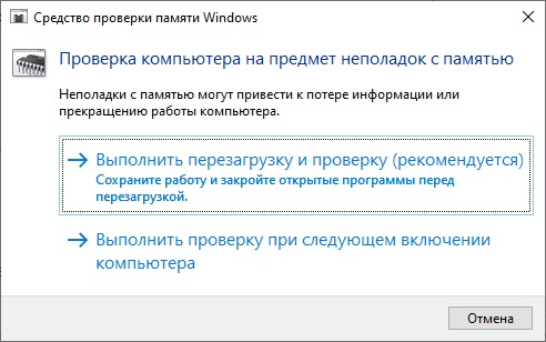 Выберите Выполнить перезагрузку и проверку, после чего компьютер перезагрузиться и будет выполняться диагностика.