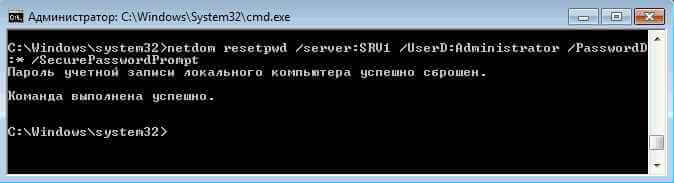 Что интересно, в рекомендациях по использованию и в справке написано, что команду Netdom Resetpwdможно использовать только для сброса пароля на контролере домена, другие варианты использования не поддерживаются. Однако это не так, и команда также успешно сбрасывает пароль на рядовых серверах и рабочих станциях.