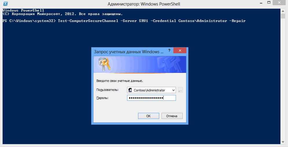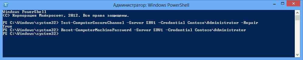 PowerShell тоже умеет сбрасывать пароль копьютера и восстанавливать безопасное соеднение с доменом. Для этого существует командлет Test-ComputerSecureChannel . Запущенный без параметров он выдаст состояние защищенного канала — True или False.