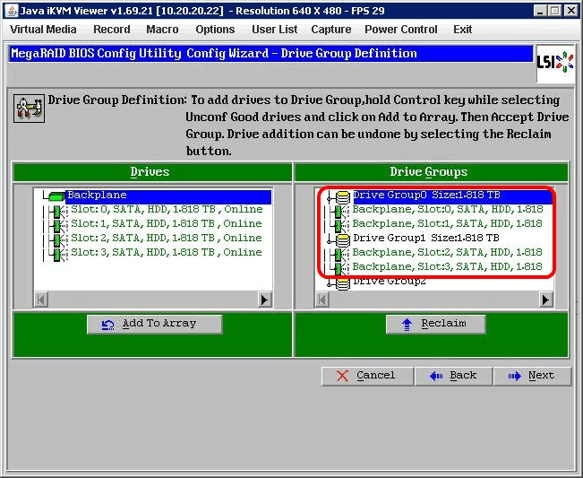 Конкретно в нашем примере необходимо создать два Drive Group, каждому из которых присвоить по два HDD. В других конфигурациях количество Drive Group может быть больше – в зависимости от количества носителей.